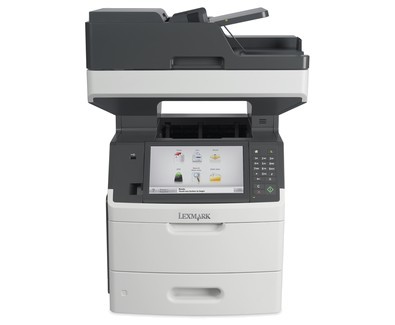 Urządzenie wielofunkcyjne MX718de Lexmarka drukuje z szybkością do 66 stron na minutę i jest wyposażone w ekran dotykowy z interfejsem e-Task, który ułatwia drukowanie, kopiowanie, faksowanie, skanowanie oraz wysyłanie wiadomości e-mail.