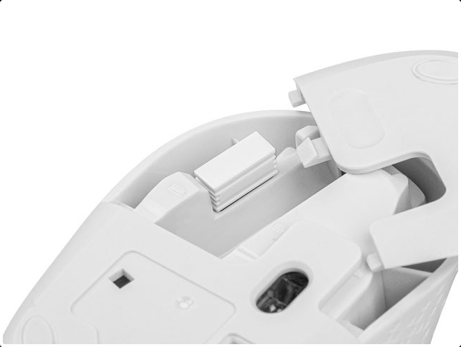 Mysz została zaprojektowana z myślą o wygodnym, codziennym użytkowaniu. Jej lekka i kompaktowa konstrukcja (zaledwie 97 × 61 × 35 mm) sprawia, że bez trudu zmieści się w torbie czy plecaku, a perforowane boki zwiększają pewność chwytu nawet podczas dłuższych sesji. Wbudowany schowek na odbiornik USB pozwala zabrać ją ze sobą wszędzie bez obawy o zgubienie akcesoriów.