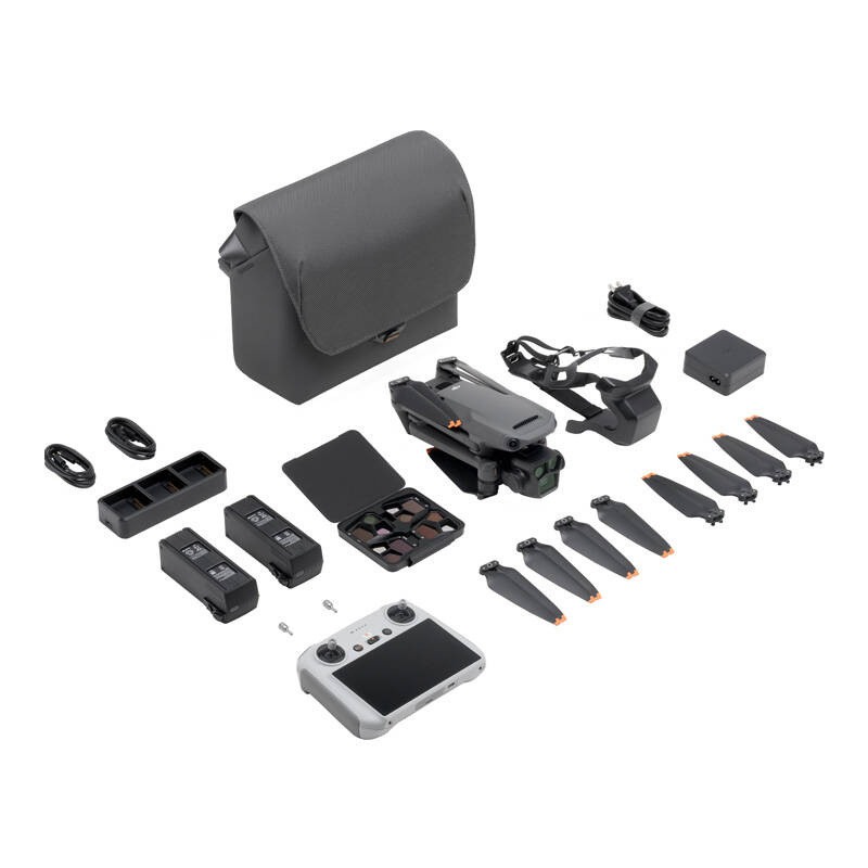 Zapewnij sobie jeszcze ciekawsze doświadczenie lotu dzięki dołączonym do zestawu akcesoriom. Filtry ND ułatwią Ci tworzenie świetnych ujęć w trudnych warunkach oświetleniowych, a torba na ramię pozwoli na wygodny, a zarazem bezpieczny transport drona. Do dyspozycji masz także różne urządzenia do ładowania – w tym hub DJI 100 W oraz adapter USB-C 100 W.