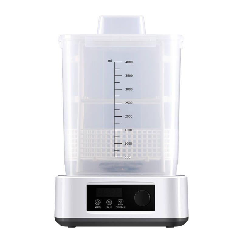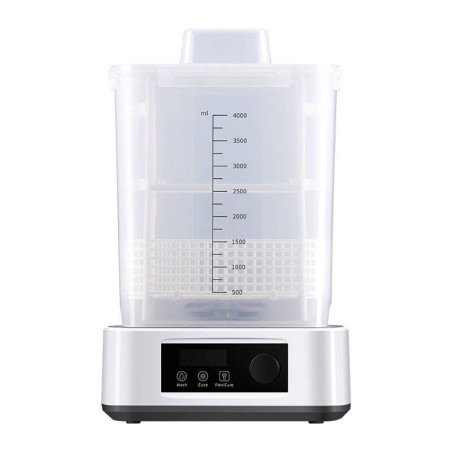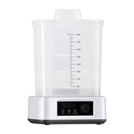 Pojemność koszyka urządzenia wynosi 3 l, a całkowita pojemność jego modułu do czyszczenia to aż 4 l. Dzięki temu za jego pomocą bez problemu wyczyścisz wydruki o wymiarach do 165 x 100 x 180 mm (w koszyku) lub do 165 x 100 x 165 mm (z platformą). Natomiast wymiary przestrzeni do utwardzania wynoszą 160 x 180 mm.