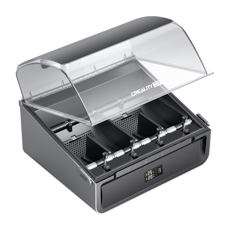 Hermetyczna konstrukcja CFS, wspierana przez specjalne pochłaniacze wilgoci, skutecznie chroni filament przed absorpcją wilgoci z powietrza. Wbudowany wyświetlacz temperatury i wilgotności umożliwia bieżące monitorowanie warunków przechowywania, a system alarmuje użytkownika w przypadku przekroczenia optymalnego poziomu wilgotności. Sprężynowy mechanizm typu batten bar zapobiega wyskakiwaniu filamentu ze slotu podczas druku, a kompatybilność z tekturowymi szpulami z serii Creality Hyper Series sprawia, że możesz korzystać z ekologicznych rozwiązań bez dodatkowych adapterów.