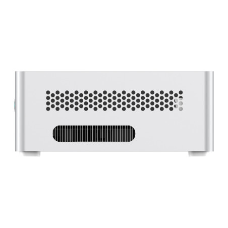 MinisForum NAB6 Lite (barebone) to komputer stworzony z myślą o użytkownikach, którzy lubią mieć pełną kontrolę nad konfiguracją sprzętu. Obudowę można otworzyć bez użycia jakichkolwiek narzędzi – wystarczy lekkie naciśnięcie górnego panelu, aby uzyskać dostęp do wnętrza urządzenia. Wewnątrz znajdują się dwa gniazda SODIMM DDR4 (3200 MHz) obsługujące do 64 GB pamięci RAM oraz slot M.2 PCIe 4.0 SSD, na którym można zainstalować dysk o pojemności do 2 TB. To idealne rozwiązanie dla osób, które chcą samodzielnie dobrać komponenty i zbudować mini PC dokładnie taki, jakiego potrzebują – bez ograniczeń i bez kompromisów.