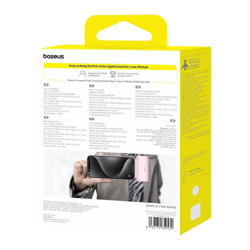 Baseus Compact sprawi, że ładowanie Twoich urządzeń nie potrwa zbyt długo. Zapewnia on moc sięgającą 20 W, co oznacza, że już w 30 minut naładujesz iPhone’a 15 do 57%. Dzięki wbudowanemu złączu USB-C powerbank doskonale sprawdzi się w połączeniu z wieloma popularnymi urządzeniami. Nie tylko smartfonami, ale i słuchawkami TWS czy tabletami.