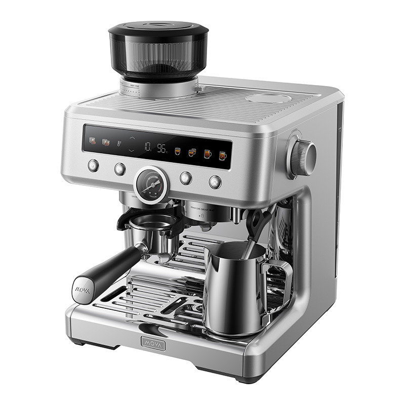 System ekstrakcji w MOVA S20 Pro pracuje z ciśnieniem 20 barów, co pozwala wydobyć z ziaren maksimum smaku i aromatu. Głowica zaparzająca o średnicy 58 mm zapewnia równomierne rozłożenie ciepła i idealny docisk podczas ubijania kawy, a solidny portafiltr umożliwia przygotowanie pojedynczego lub podwójnego espresso. Wbudowany wskaźnik ciśnienia na bieżąco pokazuje przebieg ekstrakcji, pomagając uzyskać aksamitną cremę i perfekcyjnie zbalansowany napar.