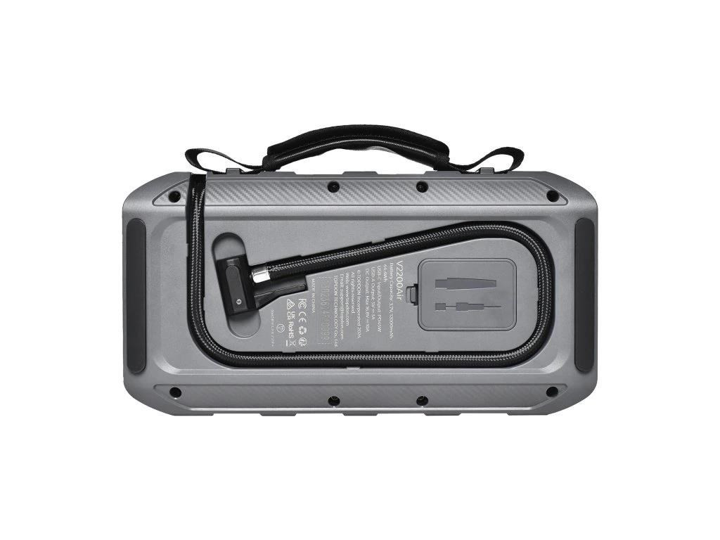 W przypadku niskiego ciśnienia w oponach lub wycieku powietrza V2200Air zapewnia szybkie rozwiązanie i napompuje opony w zaledwie 3 minuty. Dzięki sześciu różnym trybom jest idealny nie tylko do samochodów, ale także motocykli, rowerów, piłek sportowych i innych przedmiotów do pompowania. Z V2200Air zawsze masz pod ręką praktyczne i uniwersalne rozwiązanie na każdą sytuację, która może cię spotkać w trasie.