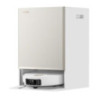 Stacja bazowa wyposażona w system ThermoHub™ czyści pady mopujące gorącą wodą o temperaturze nawet 100°C. Proces ten przebiega w kilku etapach – najpierw element grzewczy podnosi temperaturę wody, następnie dwadzieścia dysz spryskuje pady, które w szybkim obrocie dokładnie czyszczą się na specjalnej tarce. Na końcu brud jest usuwany przez dodatkowy port ssący, a całość pozostaje higienicznie czysta. Co istotne, system automatycznie obniża temperaturę po zakończeniu czyszczenia, dzięki czemu stacja pozostaje bezpieczna dla dzieci i zwierząt, minimalizując ryzyko poparzenia.