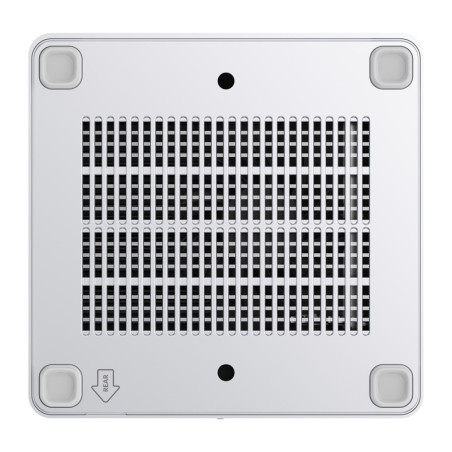 Wbudowany system chłodzenia został zaprojektowany tak, aby skutecznie odprowadzać ciepło nie tylko z procesora, ale również z pamięci DDR i dysku SSD. Dedykowany wentylator kieruje strumień powietrza bezpośrednio na kluczowe komponenty, co pomaga utrzymać stabilność pracy nawet przy dłuższym obciążeniu. Jednocześnie urządzenie pracuje cicho – poziom hałasu w codziennym użytkowaniu nie przekracza 45 dB, dzięki czemu komputer nie rozprasza podczas pracy czy spotkań online.