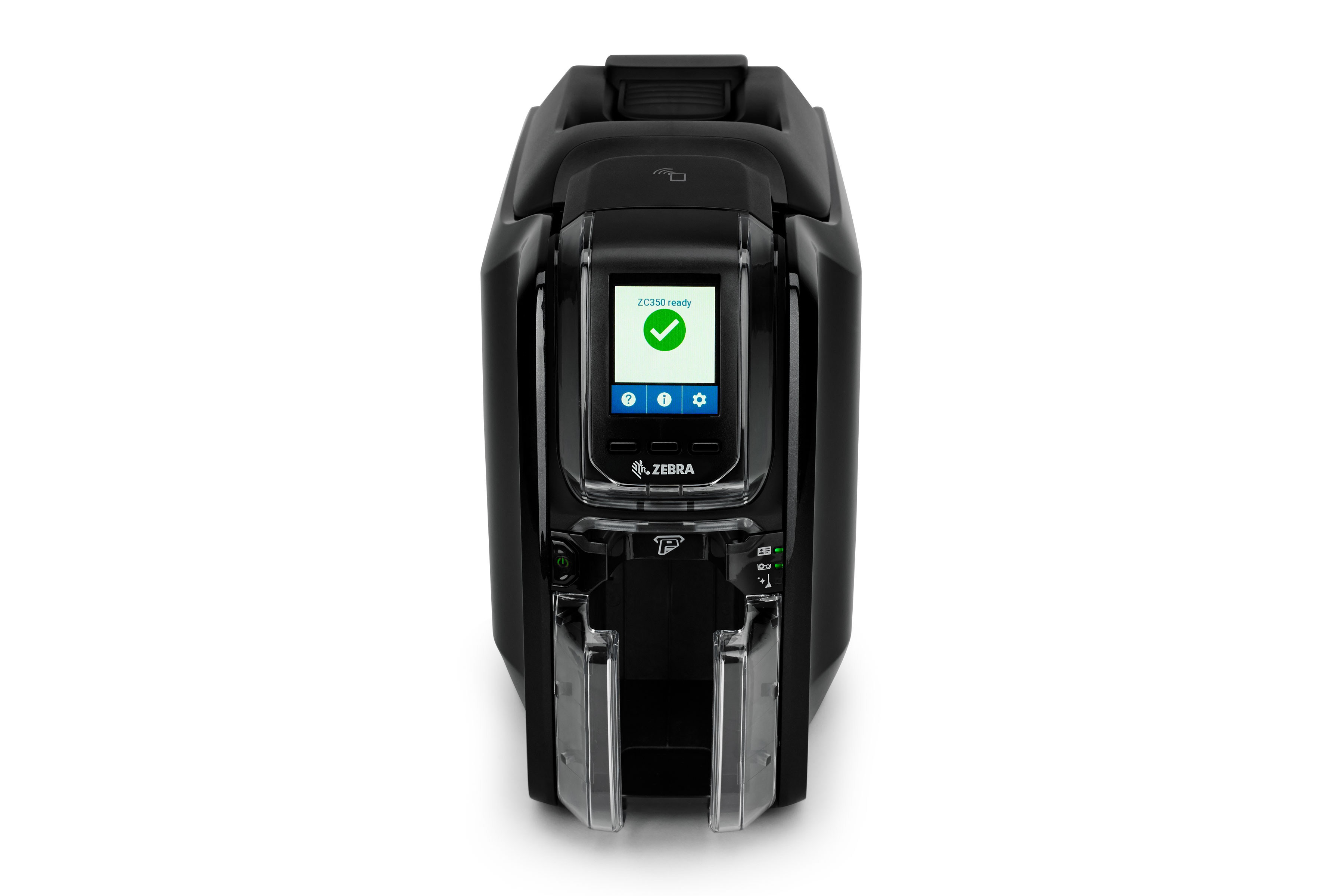 ZC350 zapewnia gruntownie przetestowane, intuicyjne ikony, animacje i komunikaty tekstowe w języku ojczystym użytkownika, co umożliwia każdej osobie korzystającej z drukarki łatwe rozumienie poleceń i komunikatów oraz instrukcji pomagających wykonać praktycznie każdą czynność — włącznie z usuwaniem blokady drukarki, rozwiązywaniem problemu z taśmą, ładowaniem taśmy lub kart i wieloma innymi czynnościami.